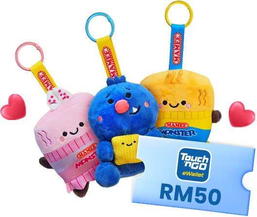MAMEE MONSTER Lebih Rangup Pas VIP temu mesrabersama Iman TroyeSet plushie edisi terhad +kredit RM50 TNG eWallet Beli produk Mamee Monster bernilai RM5 ke atasHantar gambarresit di siniSERTAI DI SINI